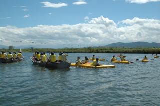 天明中学校のペーロン大会を支援し、共同作業の難しさ・大切さを実感していただきました。