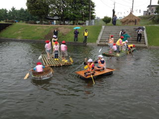 坪井川長塀前において川くだりを実施。