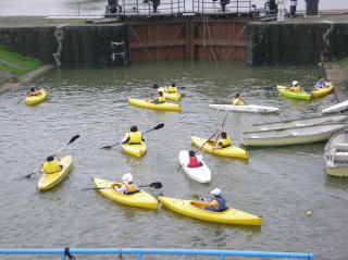 活動後、9:00から16:00まで、中無田閘門周辺でカヌー教室を行い、翌30日も9:00〜16:00までカヌー教室を行いました。